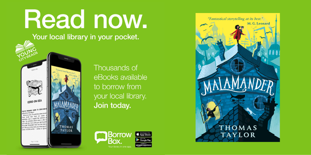 Thurs 21st May, 10.30am Malamander Q&A and author talk from Thomas Taylor Children’s author and illustrator, Thomas Taylor hosts a special online event all about this year’s Young City Reads book choice: Malamander - Book One in his Eerie-On-Sea series. …